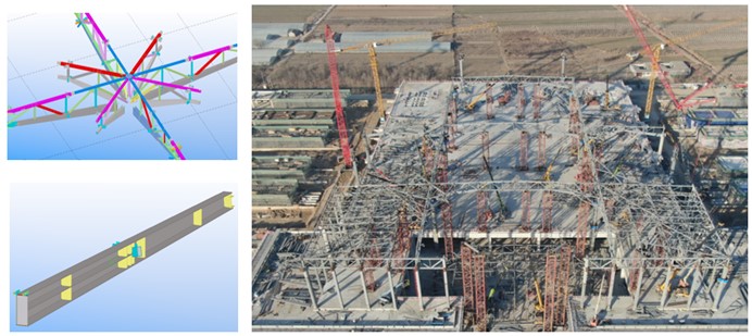 立异效果3:选用了先装置承重主结构、同步拼装其它结构和分块同步提高的整体施行工程技能道路,处理了立体交叉施工的技能难题,缩短了施工周期,保证了项目顺畅施工。